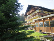 Magdalensberg 20 km from Klagenfurt: Large single-family house Ferienwohnungen Magdalensberg, 800 m a.s.l., 3 storeys, renovated. In a sunny, elevated position, along the wooded area. For shared use: large, well-kept garden, lawn for sunbathing, pond, swimming pool (above ground) (seasonal availability: 01.May. - 30.Sep.). Table tennis, patio, garden furniture, barbecue. In the house: WiFi, storage room for bicycles, storage room for skis, washing machine, tumble dryer (for shared use, extra). Airport transfer. Roofed, parking on the premises. Supermarket 5 km, restaurant 4 km, bus stop Magdalensberg Abzw Ottmanach 850 m, indoor swimming pool 9 km. Golf course (18 hole) 20 km, riding stable 3 km, mountain railway 45 km. Nearby attractions: Archäologiepark Magdalensberg 3 km, Burg Hochosterwitz 13 km. Well-known ski regions can easily be reached: Gerlitzen 50 km, Petzen 45 km. Well-known lakes can easily be reached: Längsee 18 km, Klopeiner See 25 km, Wörthersee 23 km. Hiking paths: Marienpilgerweg, Vierbergeweg. Please note: car recommended, no lift. The owner lives in the same residence. Wellness and leisure activities within 15 km. Awarded 4 Edelweiss by the Carinthian Hospitality Association in 2018.