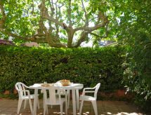 Codice alloggio3-room apartment 55 m2, on the ground floor. Comfortable and beautiful furnishings: living/dining room with 1 double sofabed (140 cm, length 190 cm), TV, DVD and air conditioning. Exit to the terrace. Large walk-through room with 1 french bed (140 cm, length 190 cm), air conditioning. Exit to the terrace. 1 small room with 1 x 2 bunk beds (90 cm, length 190 cm), shower/WC. Open kitchen (oven, dishwasher, 3 induction hot plates, toaster, kettle, microwave, freezer, electric coffee machine). Shower, sep. WC. Electric heating. Terrace 50 m2, west facing position. Terrace furniture, electric barbecue. Facilities: washing machine, iron. Internet (WiFi, extra). Parking space n 4 et 8. Please note: TV only FR. Smoke alarm. There are 2 steps to enter the terrace. 1302800054086
