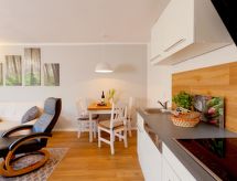 Codice alloggioWildtaube, 2-room bungalow 49 m2, on the ground floor. Living/dining room with satellite TV (flat screen). Exit to the terrace. 1 room with 1 double bed (180 cm, length 200 cm). Kitchenette (4 hot plates, oven, dishwasher, toaster, kettle, microwave, electric coffee machine). Shower/WC. Electric heating. Terrace. Terrace furniture. Facilities: hair dryer. Internet (WiFi). Parking (1 car). Please note: non-smoking house. Maximum 1 pet/ dog allowed. Smoke alarm.