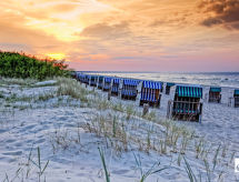 Beautiful, comfortable bungalow Wildtaube. On the outskirts, 1.1 km from the centre, in a quiet position, 1.4 km from the sea, 1.4 km from the beach. For shared use: property. Private: terrace, garden furniture, parking on the premises. Grocery, supermarket 550 m, restaurant 800 m, bakery 650 m, bicycle rental 850 m, 10 minute walk to the centre, bus stop, railway station 500 m, sandy beach 1.4 km, thermal baths Bernsteintherme 1.2 km. Tennis 1.5 km, minigolf 1.1 km, cycle lane 1.2 km.