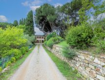 Beautiful on a vinyard country house Cellole, detached, surrounded by trees and vineyards. 6 apartments in the residence. 2.5 km from the centre of Castellina in Chianti, 11 km from the centre of Radda in Chianti, outside the resort, 17 km from the centre of Siena, in an elevated position on a slope, 92 km from the sea, in the countryside. For shared use: property 11 ha with plants and trees, swimming pool (12 x 6 m, depth 120 - 220 cm, seasonal availability: 15.Apr. - 31.Oct.). Shower/WC in the pool area, pergola, terrace, garden furniture, barbecue. In the complex: reception, WiFi, washing machine (extra) (for shared use, extra). Motor access (150 m via unmade road). Parking on the premises. Supermarket 2.5 km, bus stop 500 m, railway station Poggibonsi 14 km, sandy beach Marina di Bibbona 92 km. Nearby attractions: Monteriggioni 10 km, Wine area Chianti Classico 10 m. Local sale of farm products.
